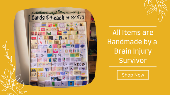 All items are all hand-made by brain injury survivors! Proceeds from this program help to expand our support programs helping survivors, their caregivers and our education programs providing helmets for needy children and preventative education programs.