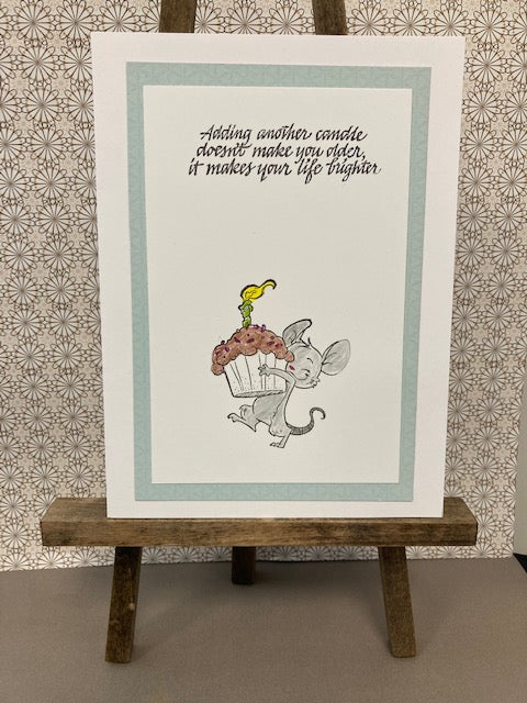 Mouse Holding Cupcake Adding another candle Blank inside.
